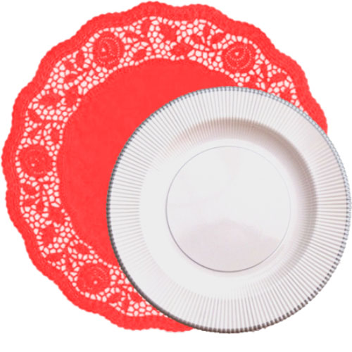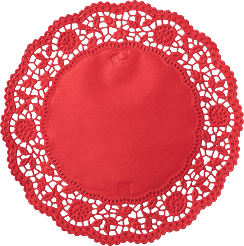 Blonda de papel roja fabricada en papel apto para uso alimentario. Se utiliza para la presentación de aperitivos, pasteles y bizcochos Puede usarse también como bajo plato. Mide 35 cm. de diámetro. Disponible en packs de 3 unidades. Fabricada en Alemania