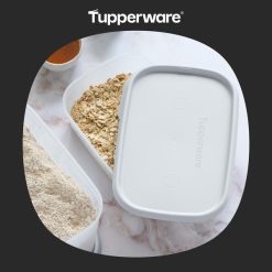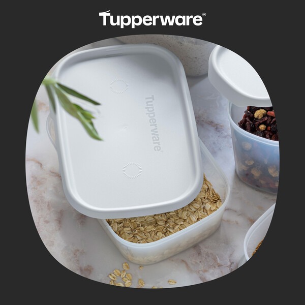 Caja click y guarda tupperware transparente con tapa en color gris. Tiene una capacidad de 1.300 ml. Es hermética a los líquidos y al aire gracias al sello o tapa de la que dispone. Se cierra presionando con el pulgar, la palma de la mano o el codo en el centro de la tapa. Sello instantáneo que expulsa el aire automáticamente.Presionar en el centro para colocar y retirar el sello.