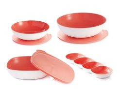 Gracias a una tecnología especial, el exterior es texturizado y mate, mientras que el interior es liso y brillante, para facilitar el servicio y la limpieza. La combinación de ambos ofrece un aspecto moderno e inmaculado. Duradero y resistente, así como fácil de abrir, gracias a la gran solapa de su tapa. Esta línea es ideal para servir en la mesa ensaladas y gazpachos, ya sea en el interior o al aire libre, y la tapa también permite almacenar y apilar en la nevera. Muy útil para conservar magdalenas, roscos u otro tipo de bollería de más volumen. No apto microondas ni congelador. Usar para alimentos fríos