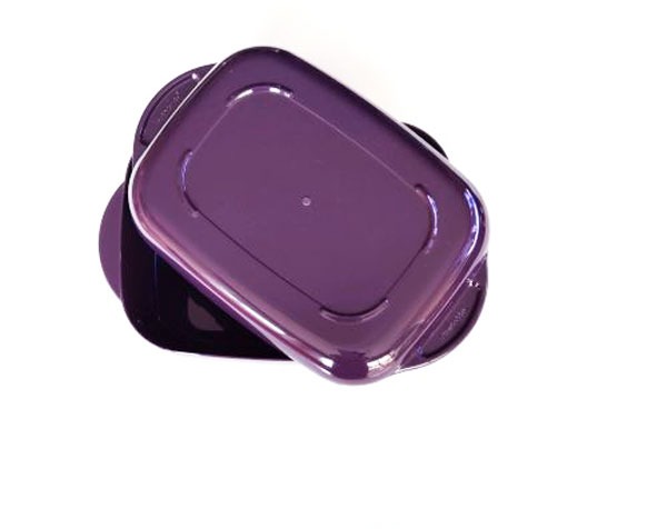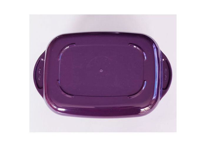Microcook o cazuela rectangular fabricada por tupperware en un material ultra ligero y resistente que la hace apta para cocinar en el microondas.